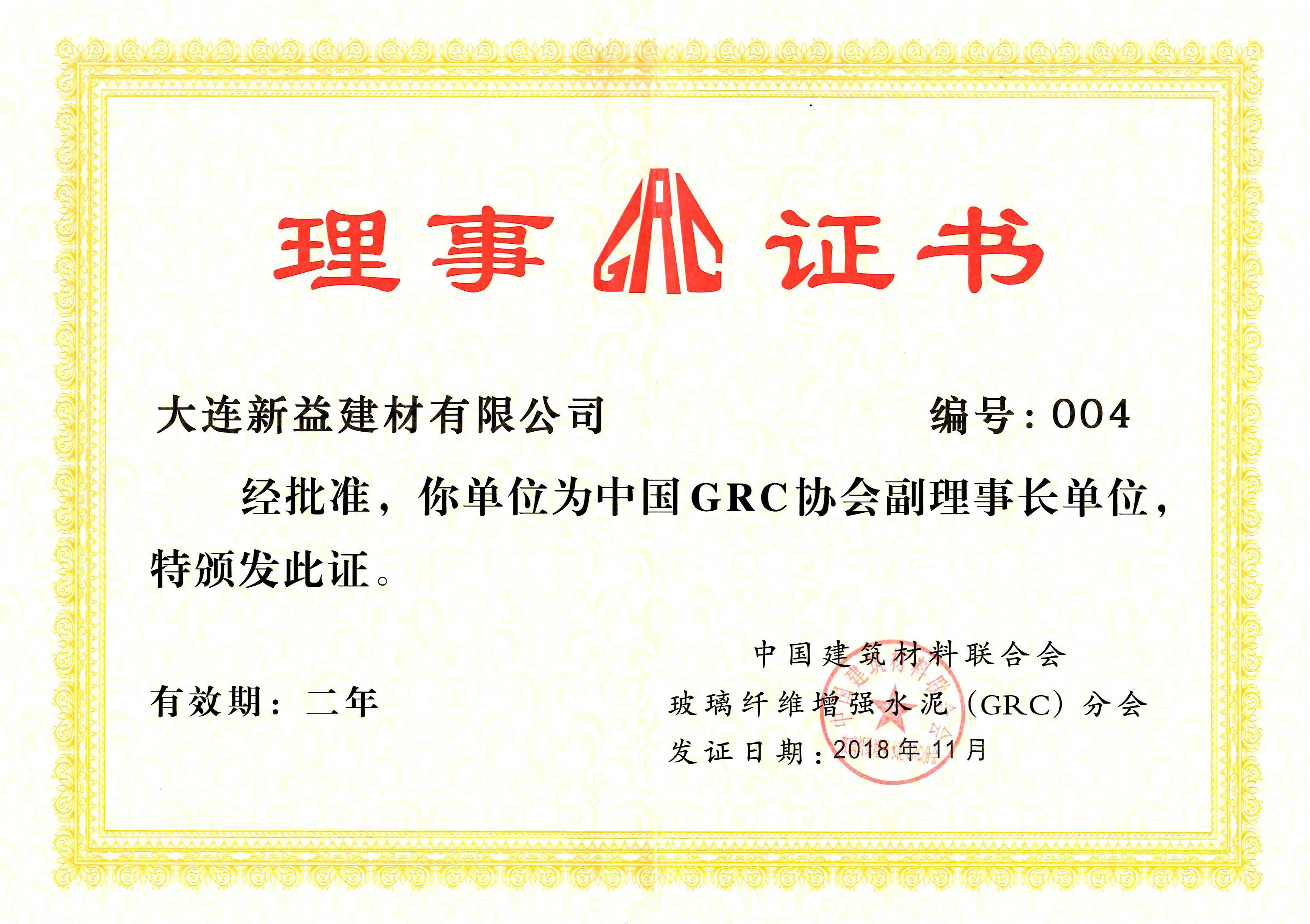 自1999年开始,大连大连新益建材有限公司就专注于GRC(GFRC)、GRG(GFRG)、FRP、UHPC、图像混凝土等绿色装饰产品的研发与实践,逐渐发展成为开发研制、设计、生产制作安装为一体的省级重合同守信用单位、中国建筑材料联合会玻璃纤维增强水泥(GRC)分会理事单位和具有进出口资格的企业。