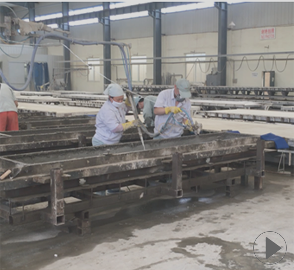 生产车间有3吨吊车2台,环保生物燃料锅炉1台,可实现全年室内生产、人工养护大型产品。我们专门建设的QC检查室配备吊车2台和没有阴影的大型飞利浦照明设备2套,能对高品质的产品进行全方位地质量检查。