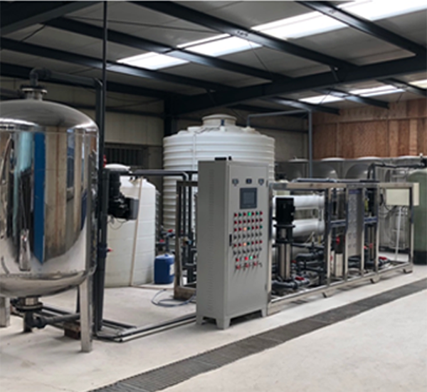 全自动水处理设备采用二级反渗透、自动清洗、美国陶氏过滤膜等高科技技术,每小时水处理能力为5吨,处理后水的电导率小于和等于10US,可以生产洁净和白度更高的水泥制品。